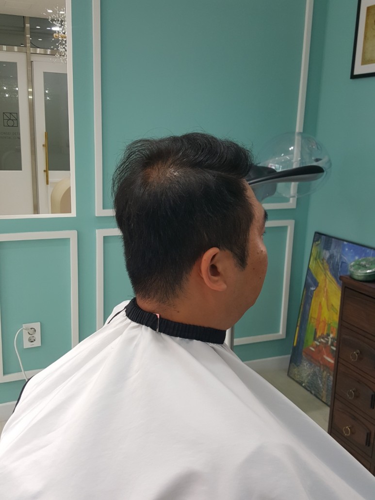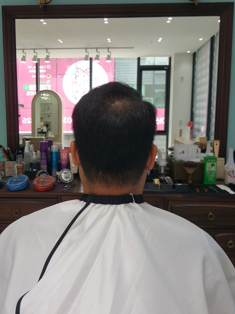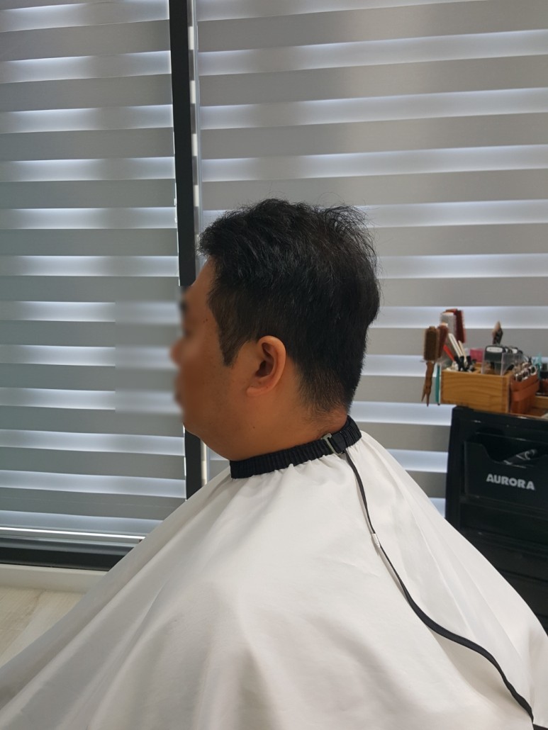 고객님과 1:1 상담을 통하여 모발의 길이를 정하고, 위의 사진처럼 불필요한 부분을 제거해서 깔끔하게 변신했습니다.
