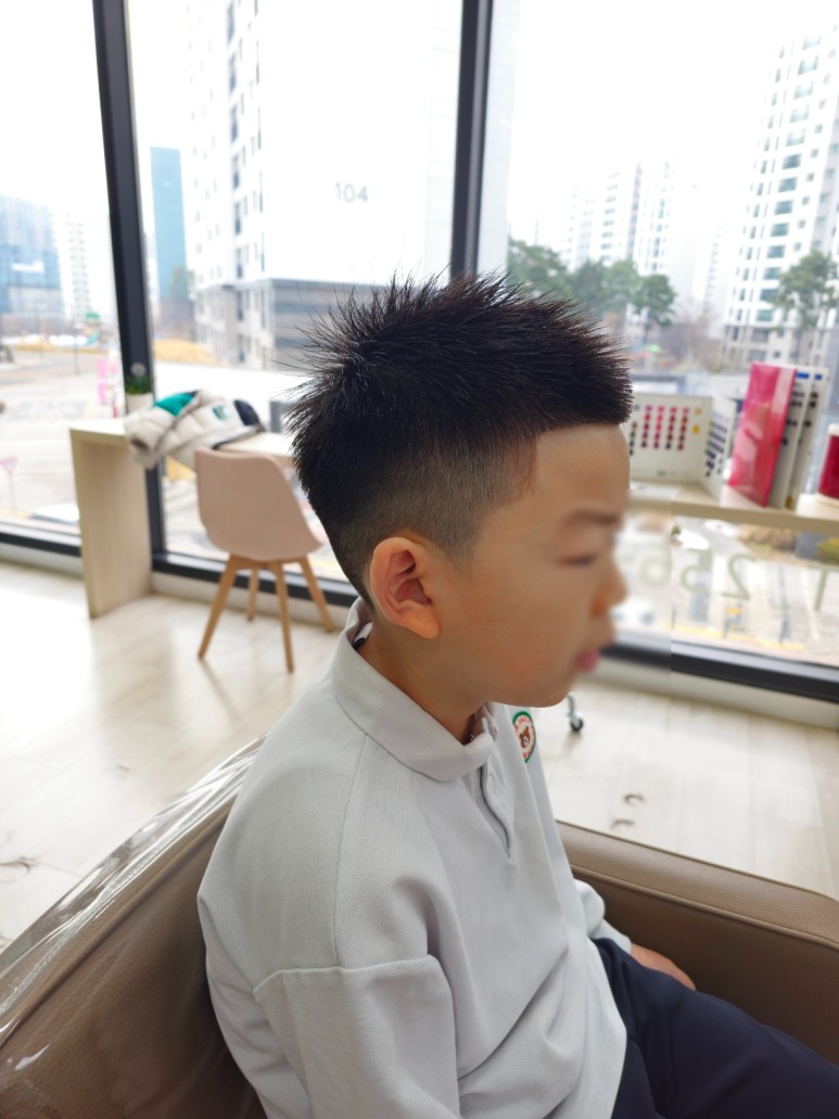 고객님과 1:1 상담을 통하여 모발의 길이를 정하고, 위의 사진처럼 불필요한 부분을 제거해서 깔끔하게 변신했습니다. 고객님 두상에 맞게 커트하니 왁스 또는 다른 제품을 사용하지 않아도 관리가 편합니다.