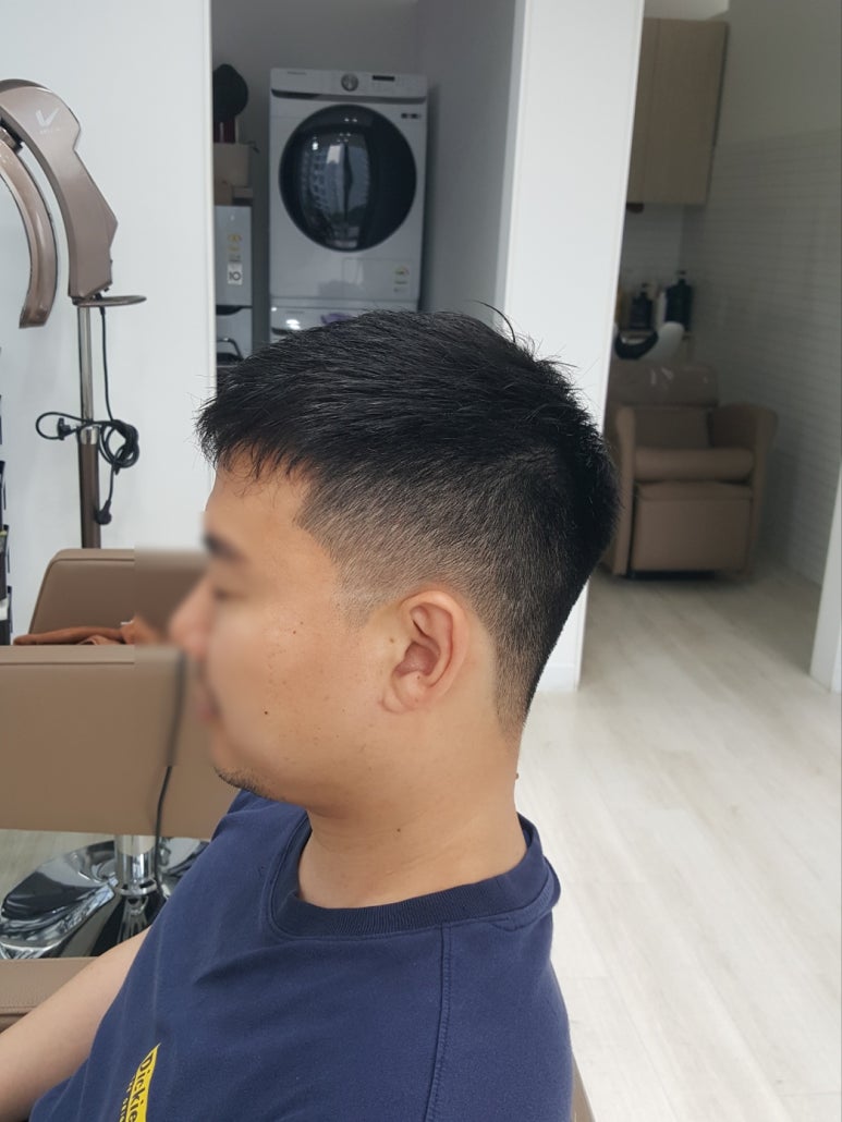 오늘 소개해 드릴 고객님은 모발이 곱슬기가 있고, 옆머리가 뜨는 스타일이셔서 조금만 모발이 자라도 덥수룩해져 깔끔하고, 왁스 스타일링을 하지 않아도 관리가 편하게 커트를 하였습니다.