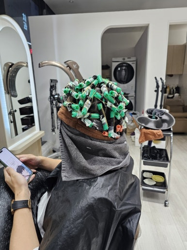 그냥 무작정 기르게 되었고, 지금은 정리가 안 돼서 펌을 하고 싶으신 분이셔서 이 길이를 살려 히피 펌을 하기로 진행했습니다.