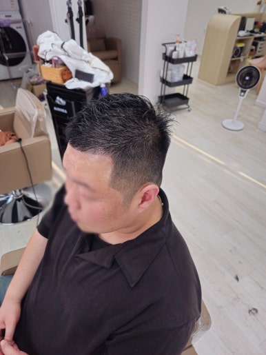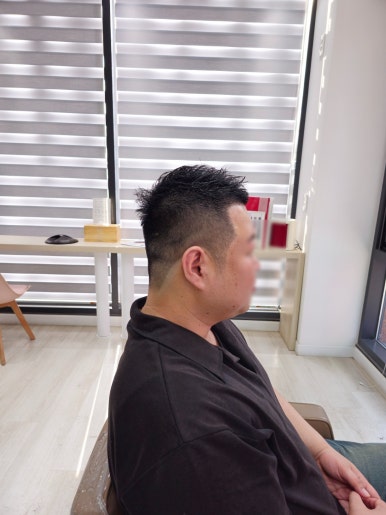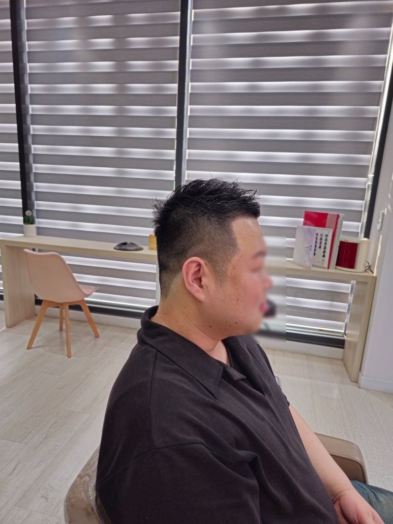 모발이 곱슬이시긴 하지만 옆머리가 뜨는 스타일이시고, 스타일 변화를 주고 싶어 하신 분이셔서 모히칸 스타일을 하기로 결정했습니다.