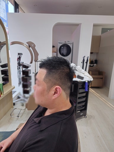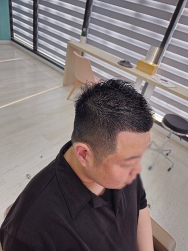 모발이 곱슬이시긴 하지만 옆머리가 뜨는 스타일이시고, 스타일 변화를 주고 싶어 하신 분이셔서 모히칸 스타일을 하기로 결정했습니다.