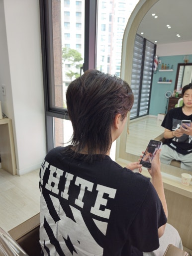전체적으로 가볍게 층을 내어 덥수룩한 느낌을 없애는 울프컷을 진행하였습니다.