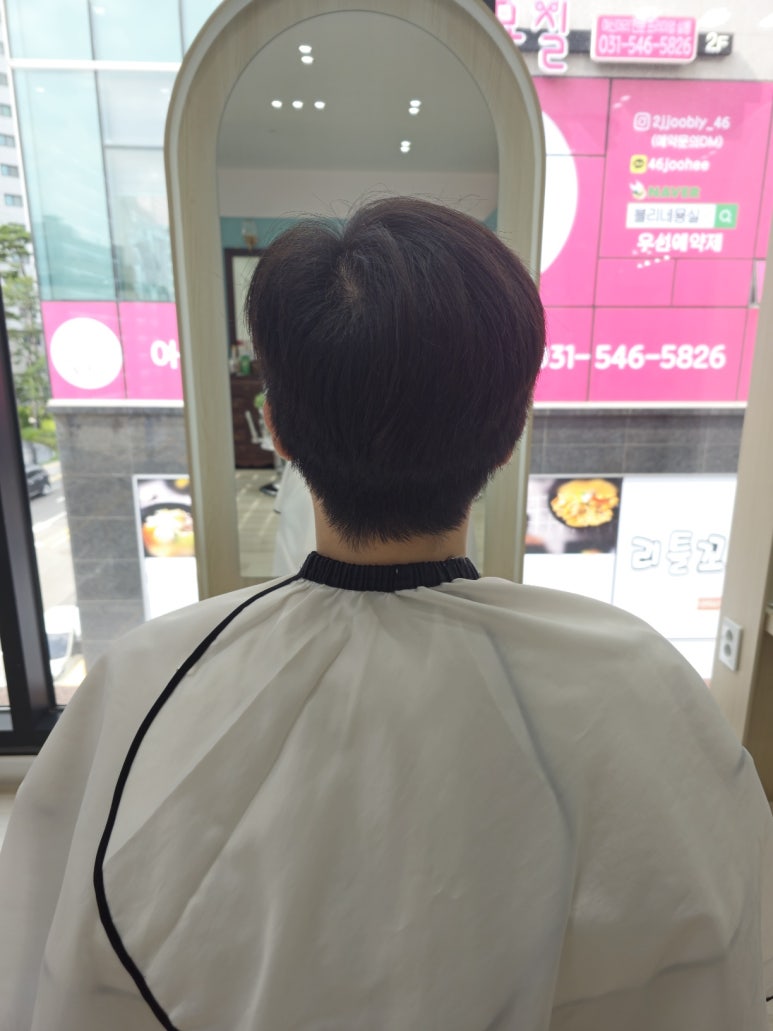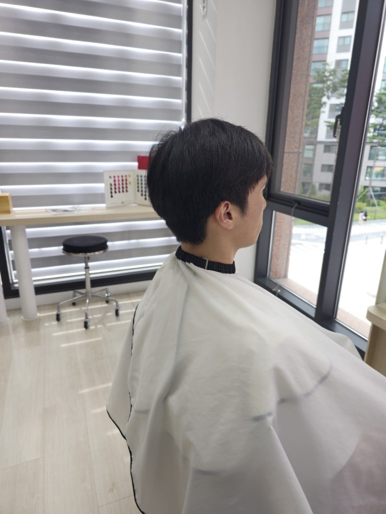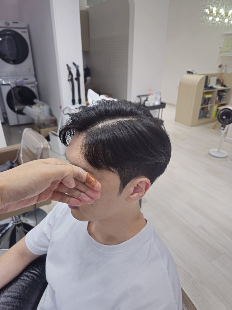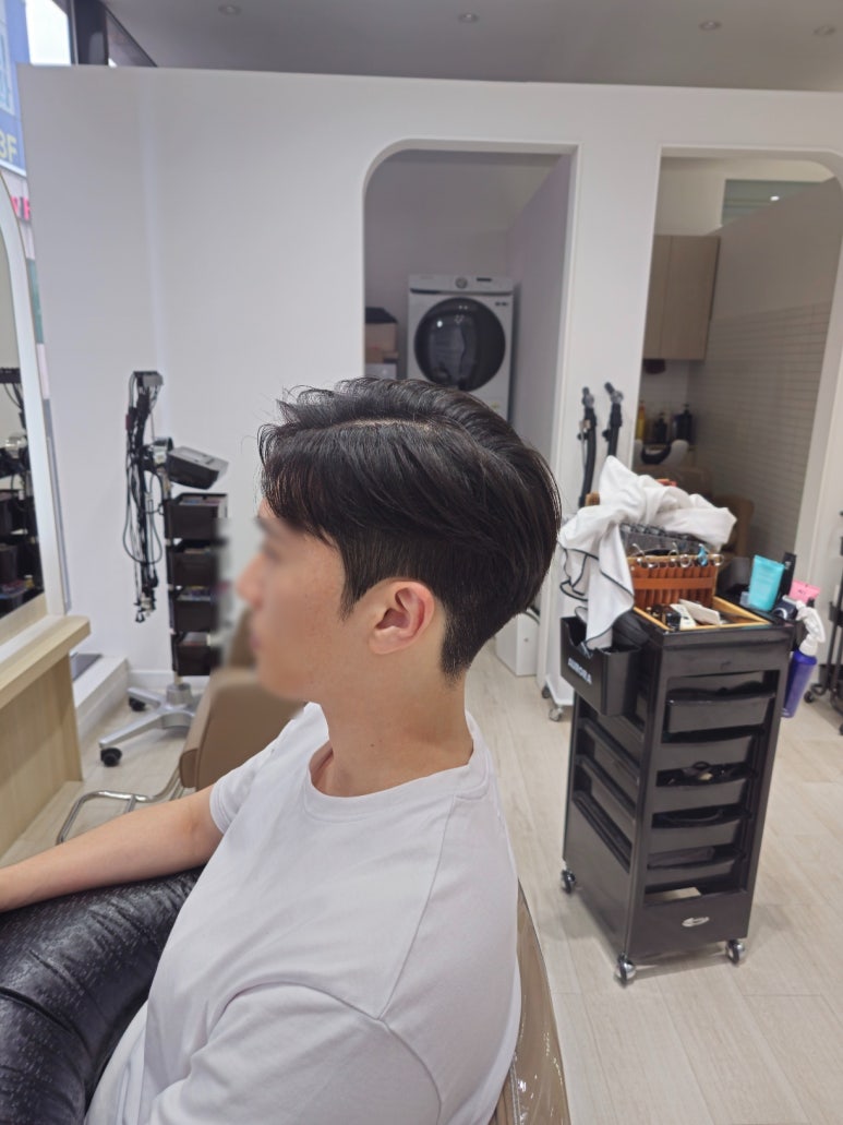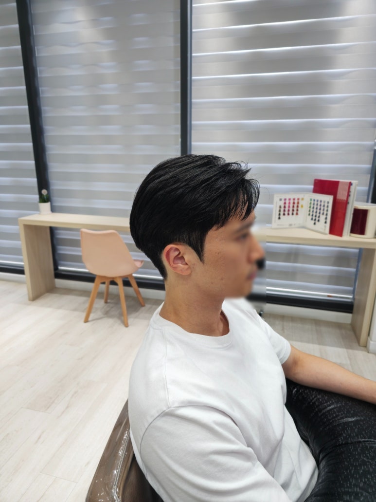 오늘 방문해 주신 고객님의 모발은 옆머리가 많이 뜨고, 앞머리가 가라앉는 스타일이었기 때문에 스타일링하기가 매우 힘든 모발을 가지고 있었습니다. 그래서 왁스 스타일을 하지 않아도 깔끔하고, 차분한 스타일을 위한 다운펌과 업 펌을 같이 시술했습니다.