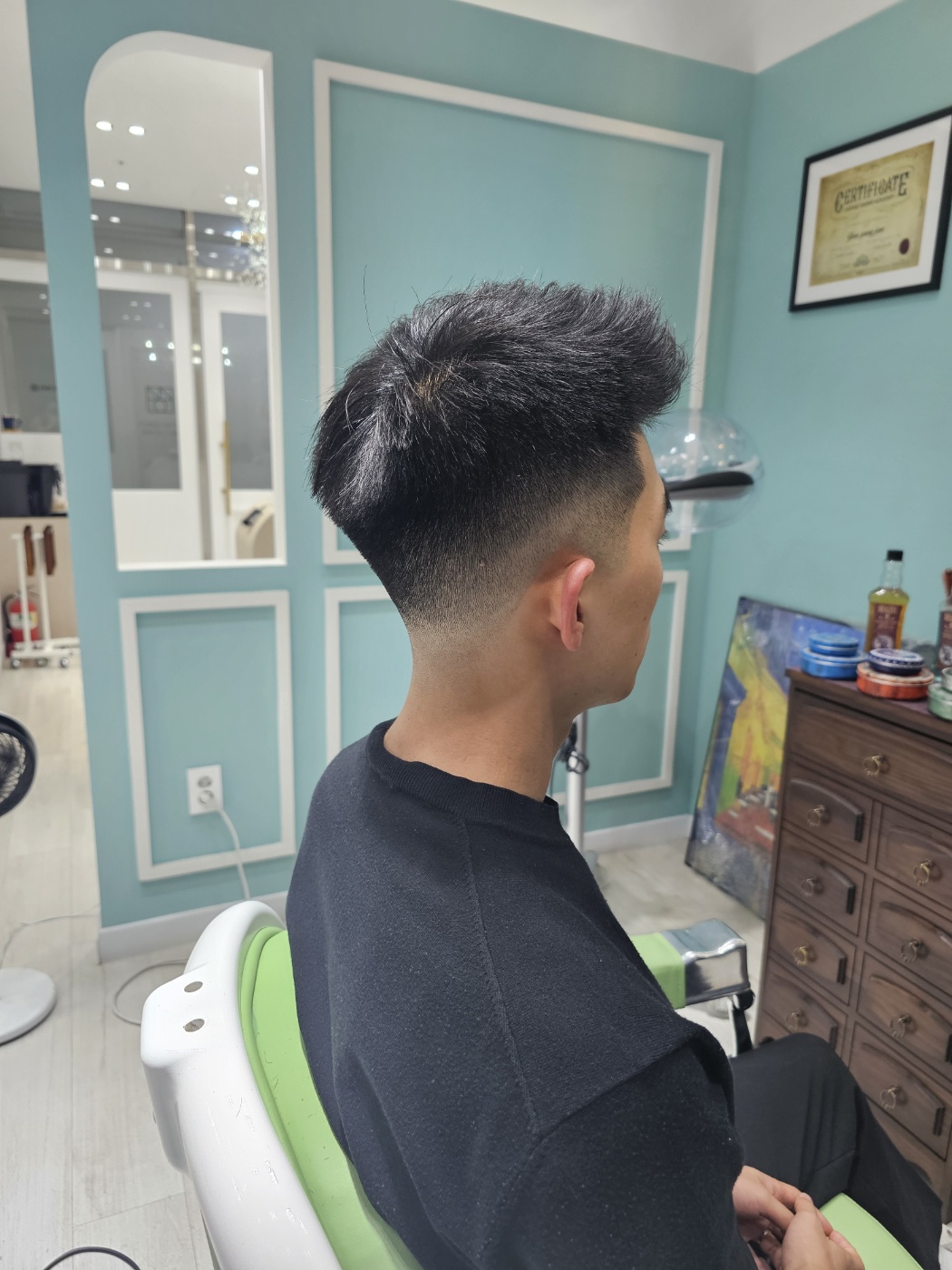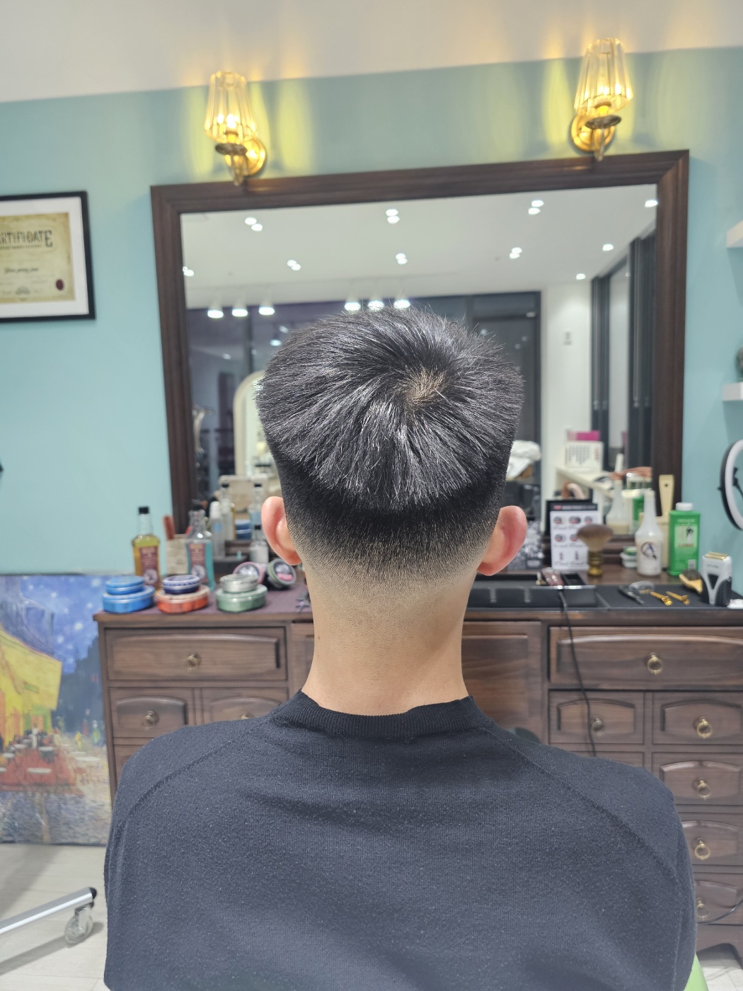 모발이 많이 뜨는 스타일이셔서 관리도 힘들고, 지저분해지기 쉬운 타입이라 불필요한 부분은 제거하고, 필요한 부분은 살리는 페이드 컷을 진행하였습니다.