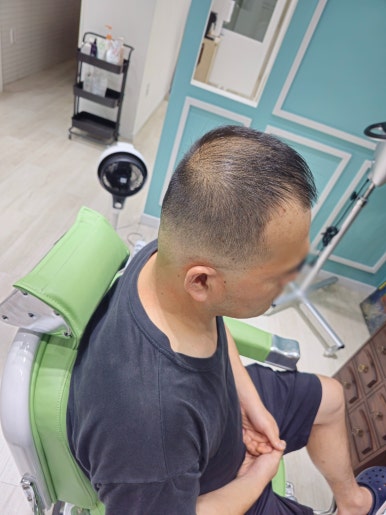 짧고, 깔끔한 스타일을 위하여 페이드 커트를 진행하였고, 제품을 바르지 않아도 관리가 편한 스타일 중 하나입니다.