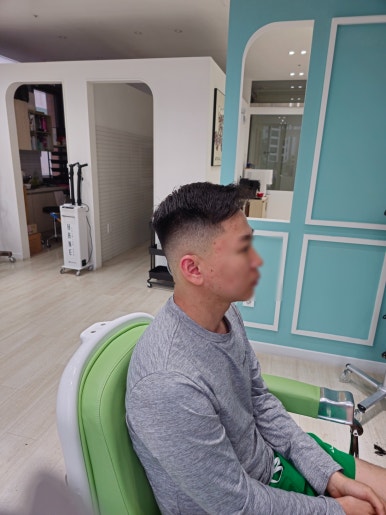 오늘 방문해 주신 고객님은 앞머리 쪽 모발이 약하신 고객님이시고, 모발 손질은 안 해도 되면서 이미지 변신을 하고 싶어 하셔서 손질 안 해도 관리가 편하고, 깔끔한 바버커트를 진행하였습니다.